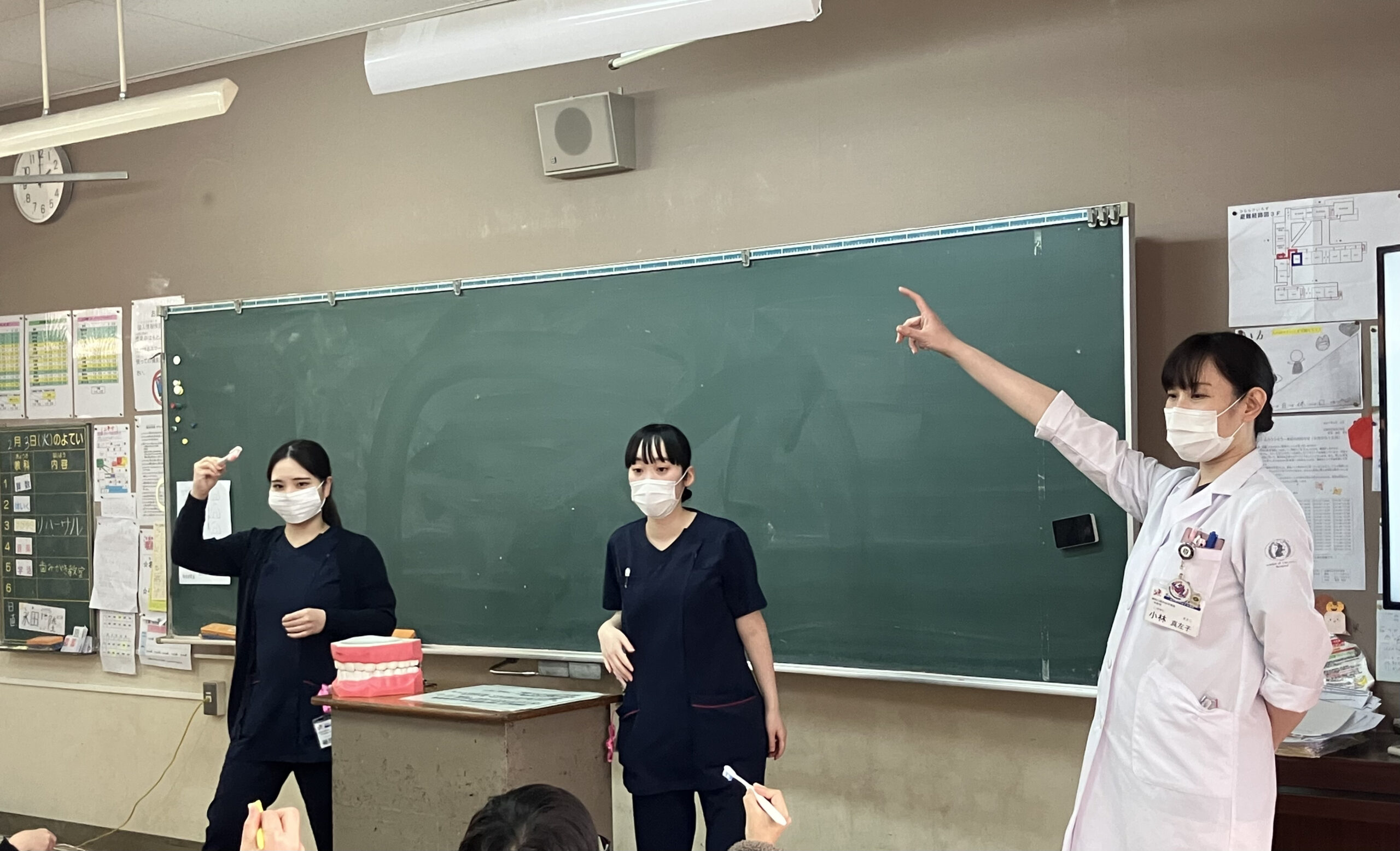 2026年2月3日(火)に塩冶小学校にて歯磨き教室を実施しました。はじめは緊張をしましたが、児童と触れ合って会話する中で、自身の歯科医師としての社会的な役割の重要性をあらためて認識しました。地域に貢献できる歯科医師となれるように今後も研鑽していきたいと思います。