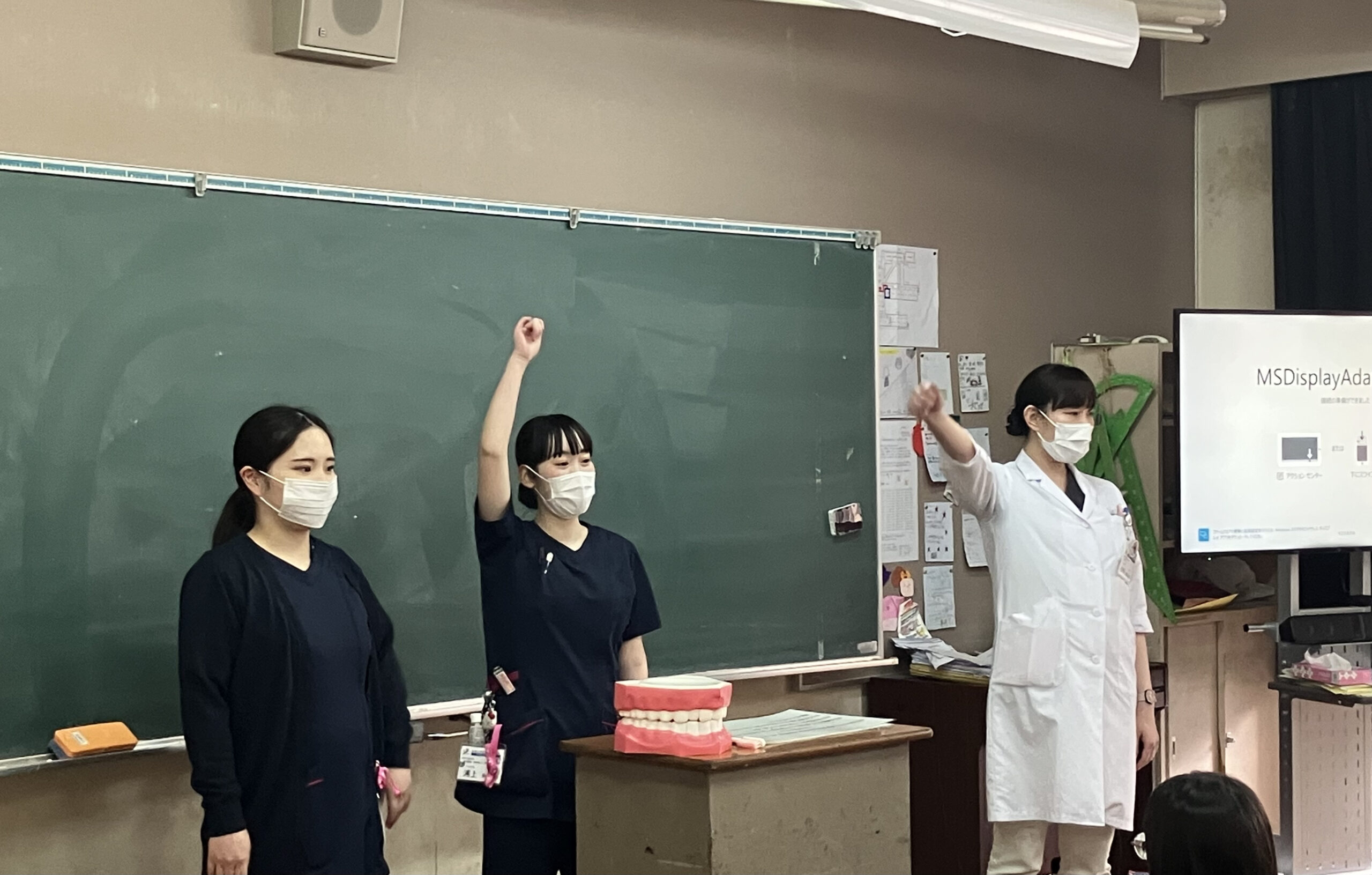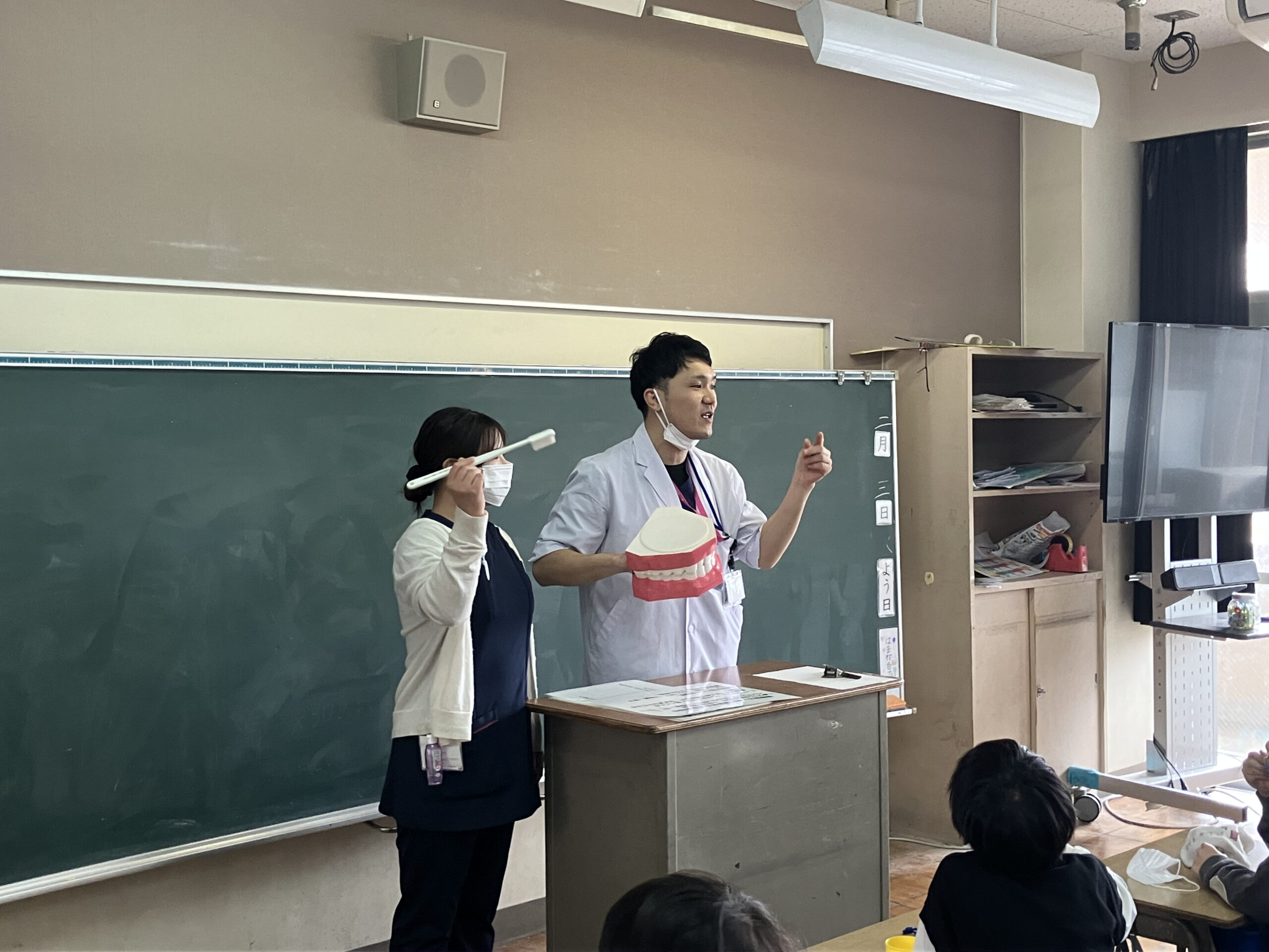 2026年2月3日(火)に塩冶小学校にて歯磨き教室を実施しました。はじめは緊張をしましたが、児童と触れ合って会話する中で、自身の歯科医師としての社会的な役割の重要性をあらためて認識しました。地域に貢献できる歯科医師となれるように今後も研鑽していきたいと思います。