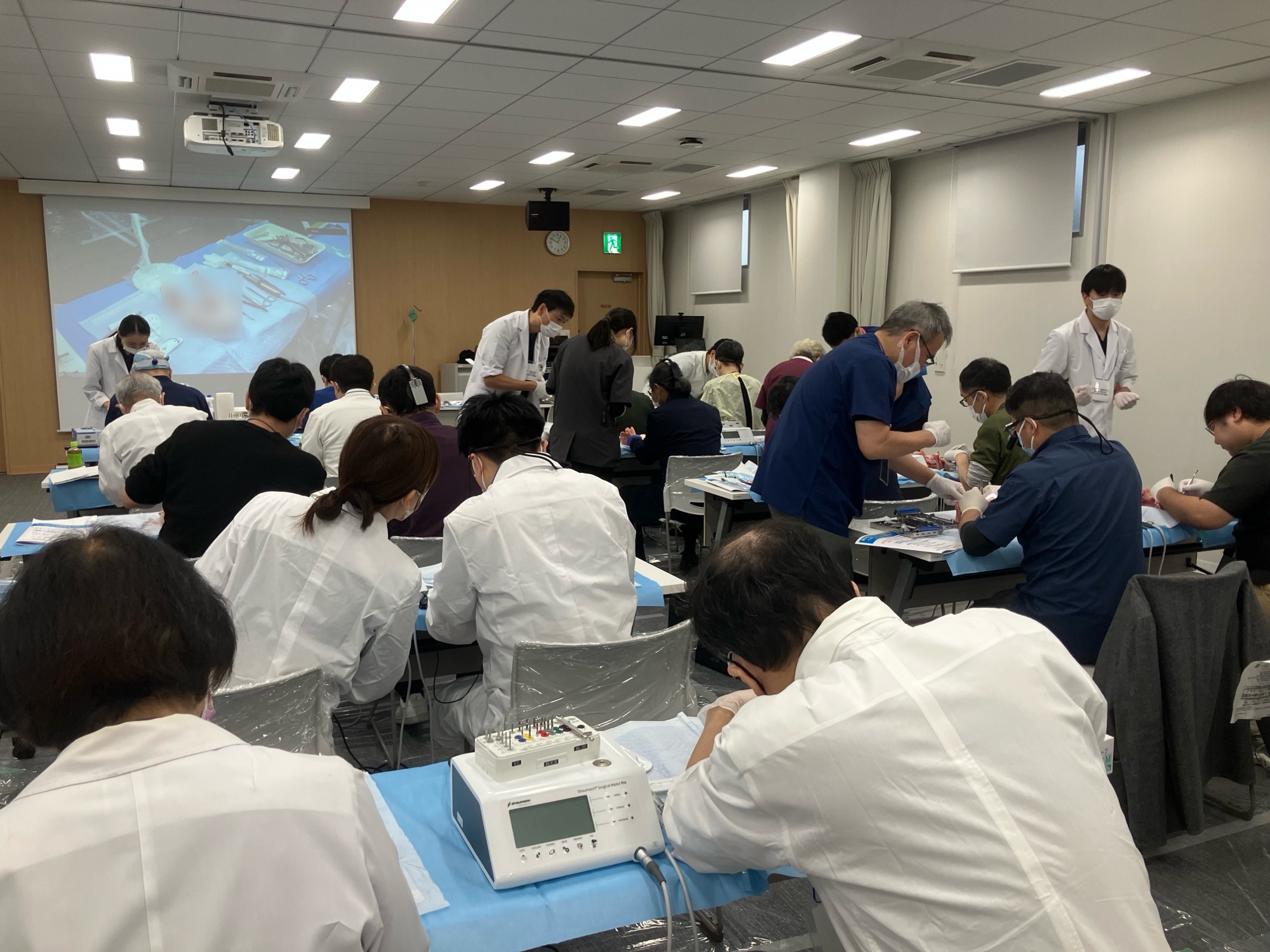 本日11月23日(日)、上記第29回公益社団法人日本顎顔面インプラント学会総会・学術大会プレコングレスセミナー“豚顎骨を用いた実践口腔外科関連臨床小手術ハンズオン A to Z,“新鮮ブタ顎骨” を用いた徹底集中口腔小手術実技マスターコース!”をストローマン・ジャパン株式会社, 松江臨床研究会の共催にて開催いたしました。(一社)島根県歯科医師会・松江臨床研究会の先生方を中心に、29名の先生のご参加を頂きました。歯科口腔外科的基本手技を中心に、われわれ歯科口腔外科の医局員とともに学ばせていただきました。先生方からはご好評を頂き、また医局員にとりましても大変有益な1日となりました。この場をかりて、関係各位に深謝いたします。