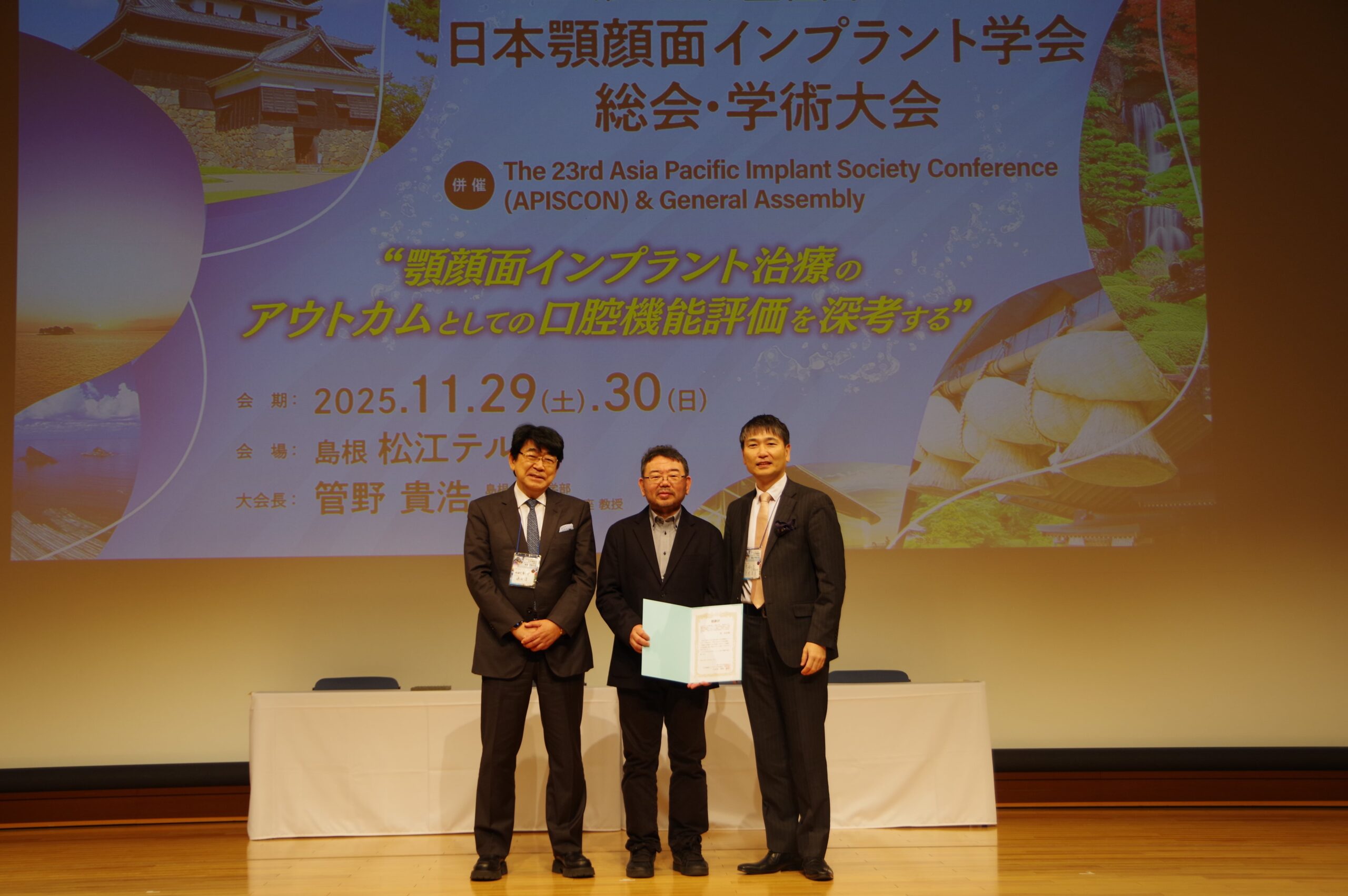 今回の開催を通じて得られた経験を活かし、当講座としても口腔顎顔面インプラント治療および関連領域の発展に向け、引き続き教育・研究・臨床の三位一体で取り組んでまいります。最後になりますが、全国から松江の地へお越しいただいた皆さま、また準備段階から多大なご尽力をいただきました関係者の皆さまに、改めて深甚なる感謝を申し上げます。今後とも、島根大学医学部歯科口腔外科学講座をどうぞよろしくお願い申し上げます。