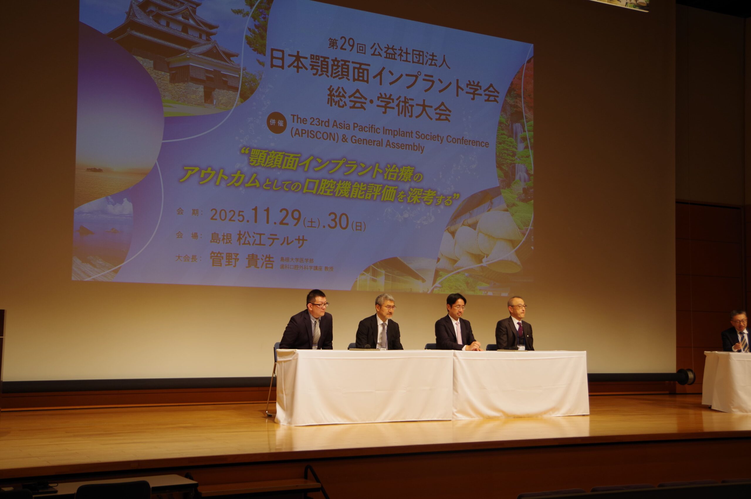 このたび、第29回 公益社団法人 日本顎顔面インプラント学会総会・学術大会ならびに 第23回 Asia Pacific Implant Society Conference (APISCON) を、2025年11月29日・30日の両日にわたり、島根県松江市・松江テルサにて開催いたしました。