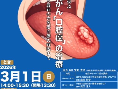 市民公開講座を開催します「やさしく学ぶ 最新!!お口のがん:口腔癌 の治療 〜標準治療から最新の光免疫治療の解説まで〜」